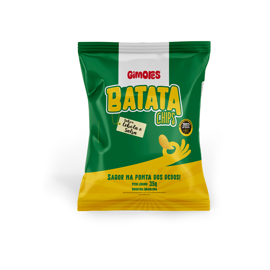 Batata Chips sabor Cebola e Salsa Batatas crocantes, sequinhas e temperadas com um sabor especial de Cebola e Salsa. Perfeita para levar em um passeio, para compartilhar em casa ou devorar sozinho. Peso líquido 35g
